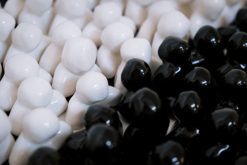 This work is the origin point from which many of the others emerged. Freud’s initial concept was informed by the shared humanity of the combatants, encapsulated in the notion of the soul. Inspired by the urban legend that the human soul weighs 21 grams, Freud crafted each piece in this set to that measurement, irrespective of ranks, and looks at how this impacts their stature - take the king, who in order to achieve such great heights has made himself vulnerable in the process.